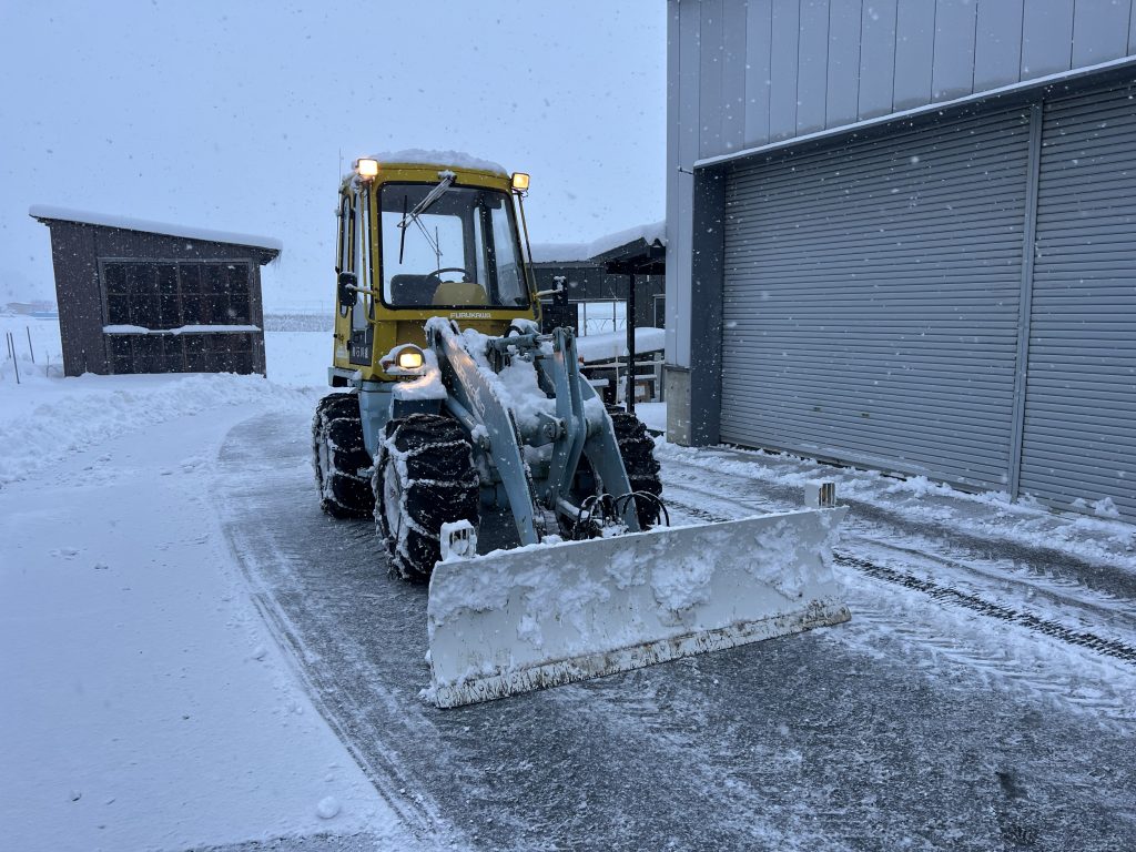 山形もいよいよ雪が積もりました。本日の朝の積雪は20cm程あり、弊社でも今季初の除雪作業が行われました。